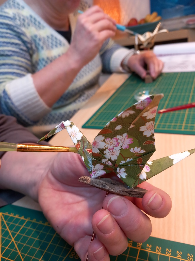 betekent letterlijk papier vouwen. De kraanvogel is het meest bekende vouwsel en is het symbool van gezondheid, lang leven, trouw en geluk.