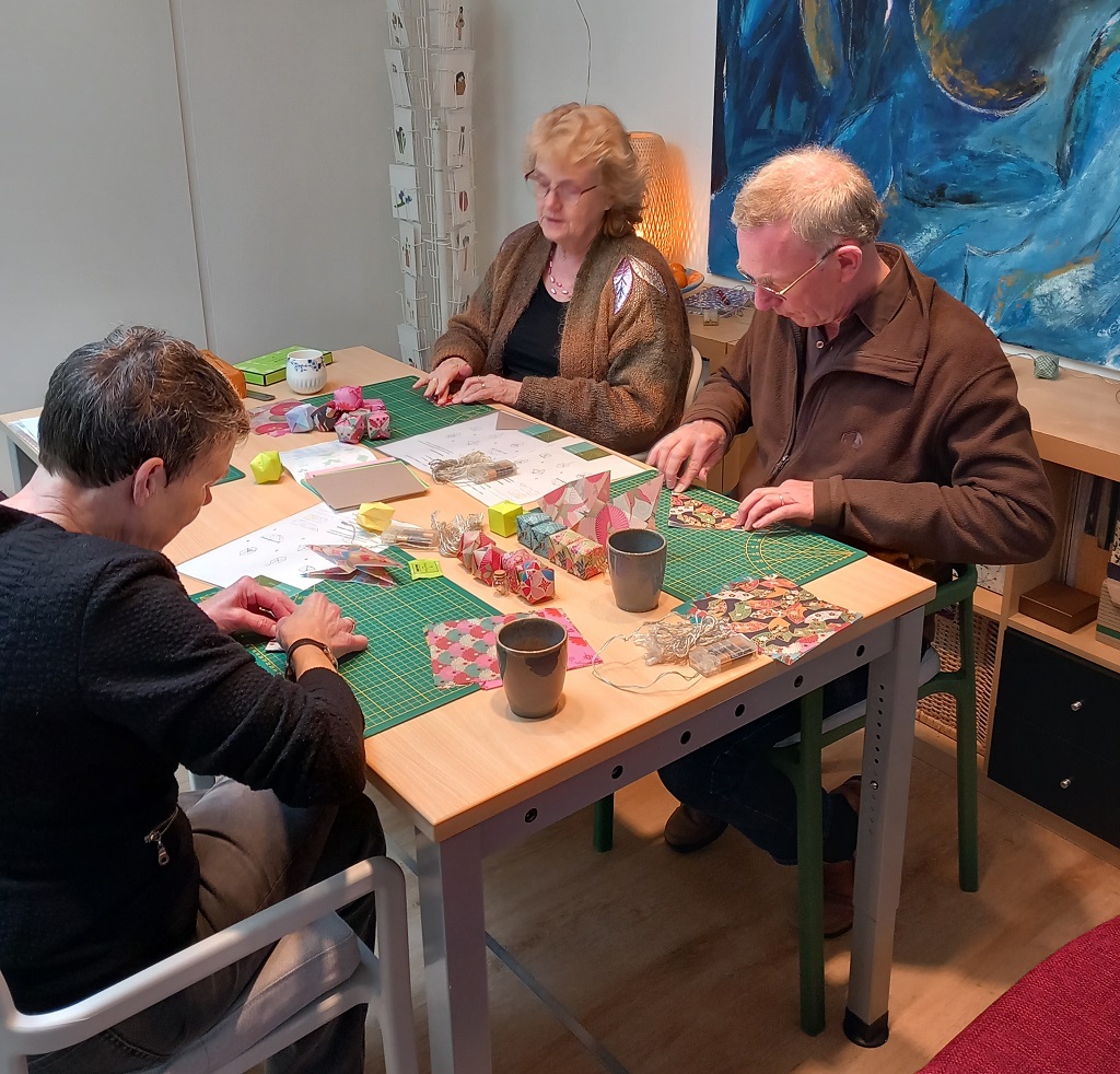 Inmiddels geeft Anne met enthousiasme workshops, waar ze groepen lichtsnoeren, lampjes, kraanvogels en nog veel meer, leert vouwen.